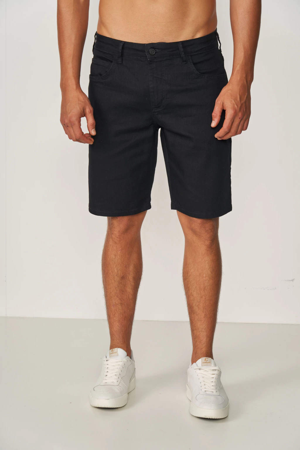 Bermuda jeans com modelagem tradicional, comprimento acima do joelho e cós regular. O jeans preto confere um visual moderno e versátil à peça. Combine com camisetas, polos ou camisas para um look casual e cheio de estilo.