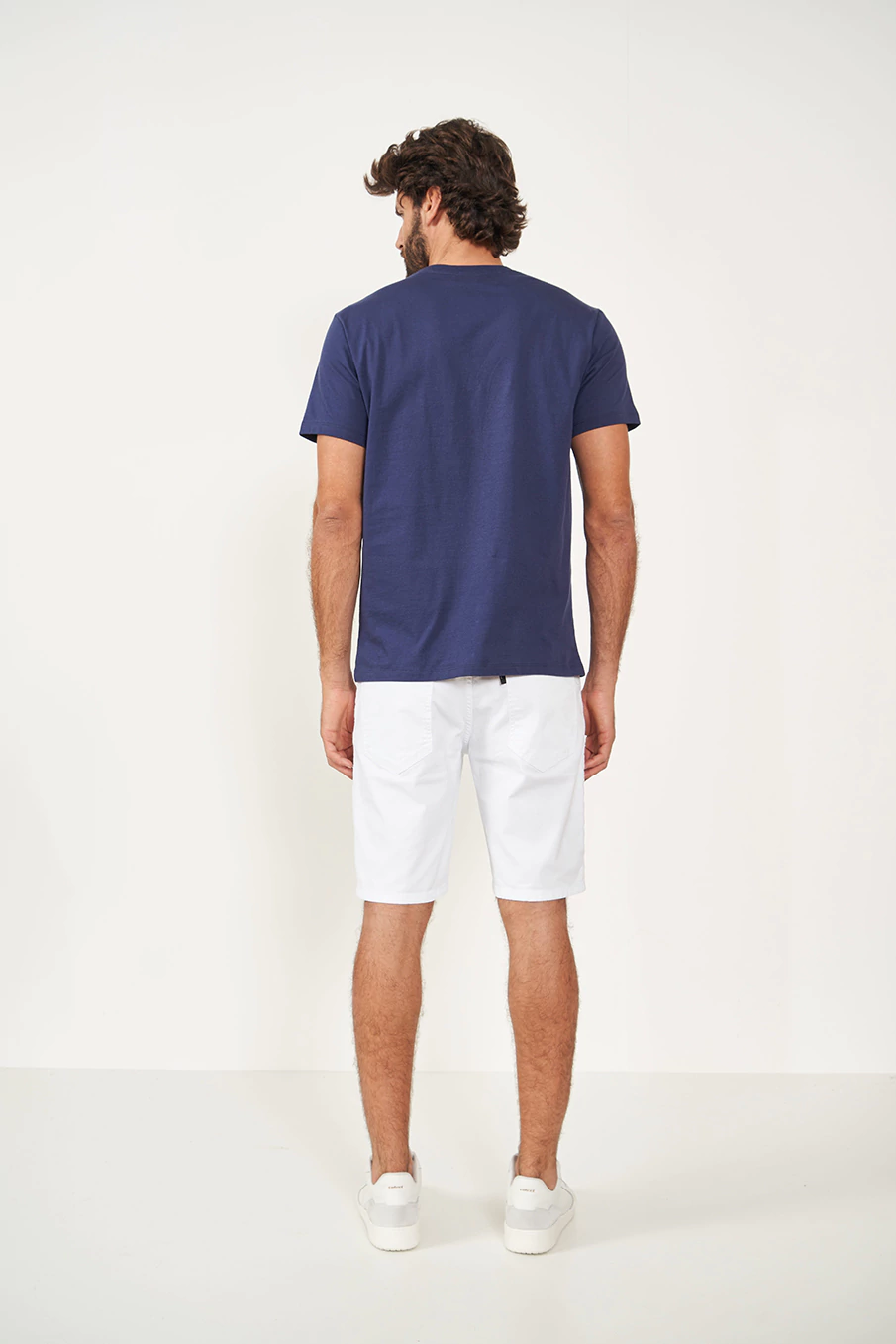 Como a Bermuda Sarja Davi oferece praticidade, você pode usar uma camiseta lisa para passear ou até mesmo trabalhar.