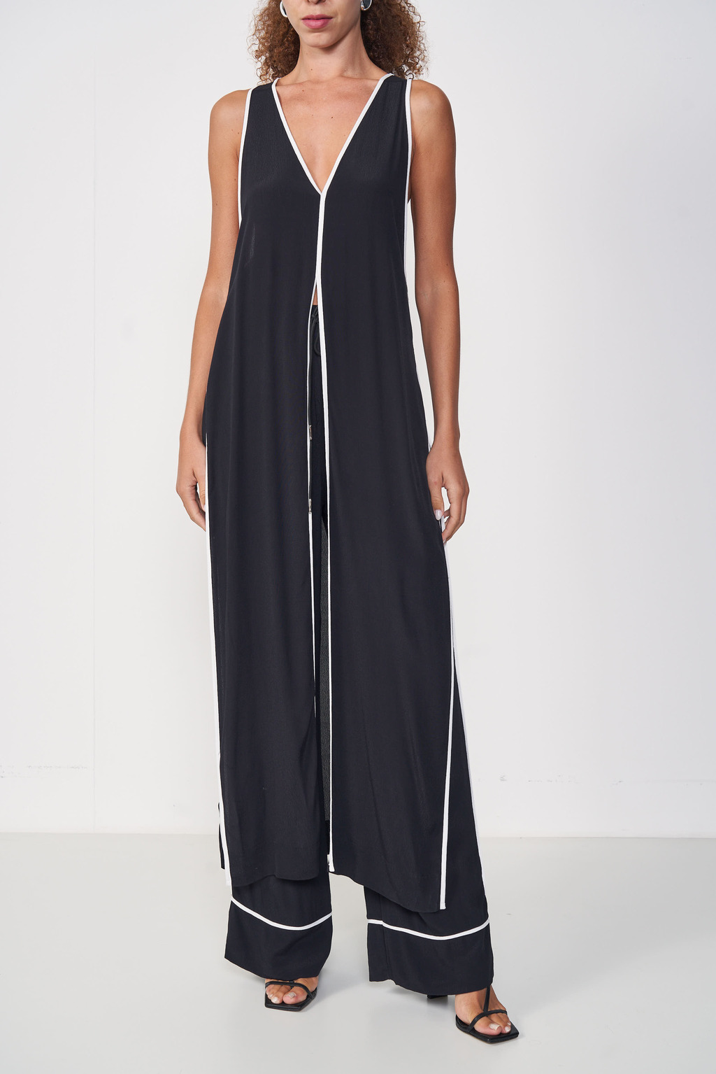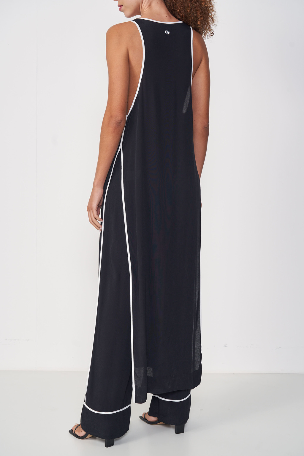 Experimente a fluidez e a elegância desta blusa longa que eleva qualquer produção. Uma peça versátil que adiciona um toque de requinte e estilo, perfeita para diversas ocasiões.