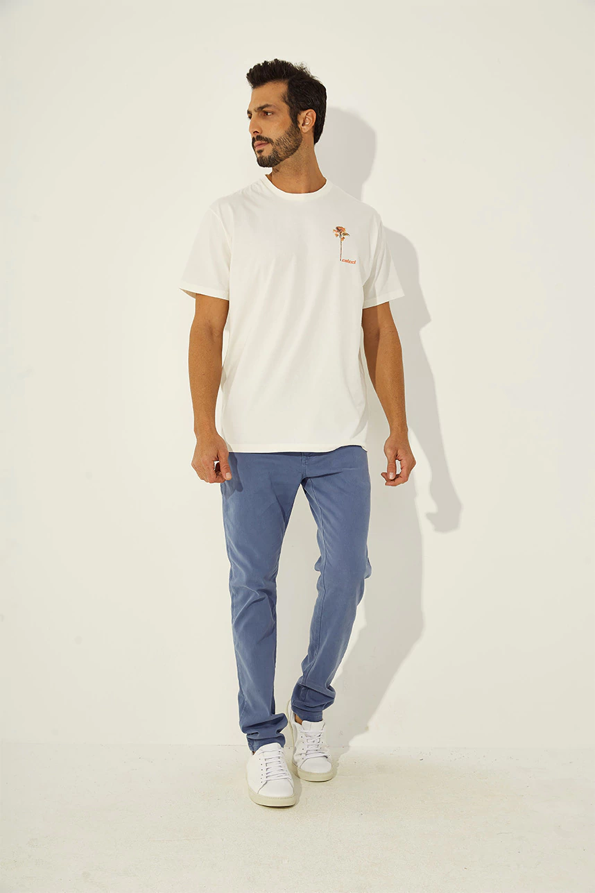 Camiseta apresenta shape slim e modelagem comfy. A peça possui estampa exclusiva Verão 23, gola arredondada, mangas curtas e comprimento médio.