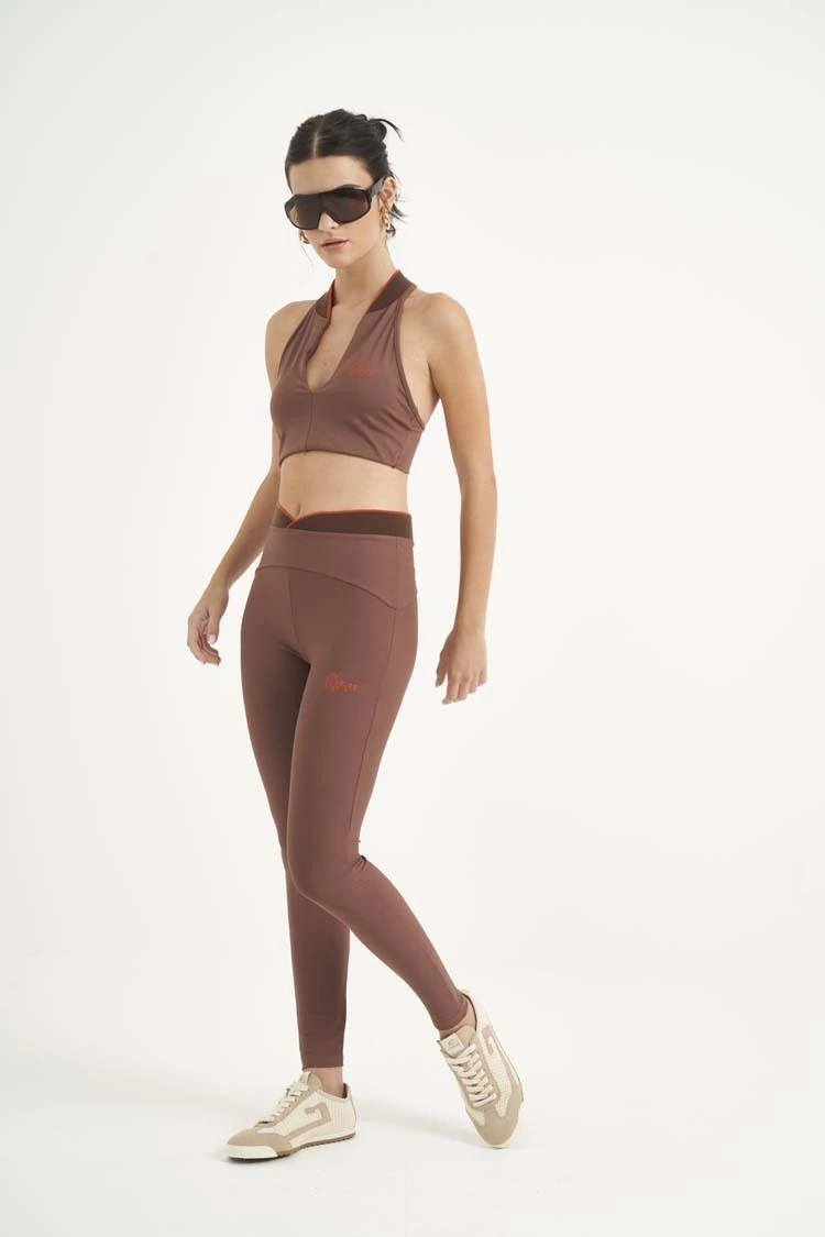 Design: Modelagem cropped, decote em V com acabamento contrastante, gola halter, logo COLCCI SPORT discreto.